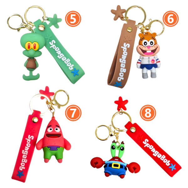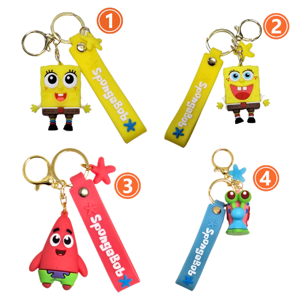 Bob Esponja chiquito #1 Bob Esponja Sonriente #2 Patricio Chiquito #3 Gary #4 Calamardo #5 Arenita #6 Patricio Clásico #7 Don Cangrejo #8 Patricio Marinero #9 Bob Esponja Clásico #10 Bob Esponja con gorra #11